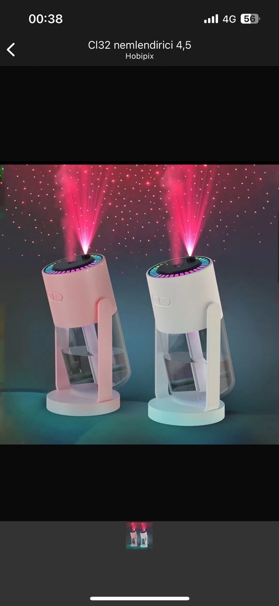 Pembe renkli, LED ışıklı hava temizleyici ve nemlendirici, odanız için temiz ve nemli hava sağlar.