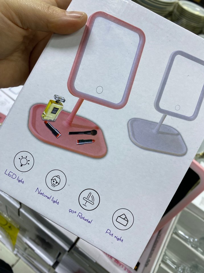 Pembe LED Işıklı Masaüstü Makyaj Aynası ıkı renk