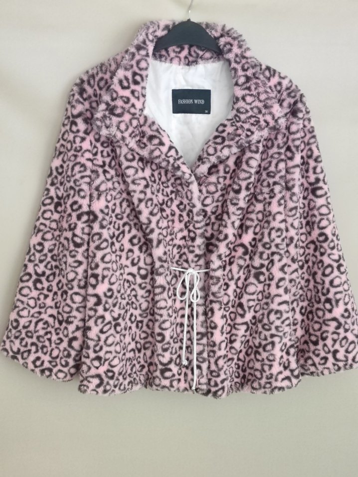 Pembe Leopar Desenli Kadın Peluş Mont