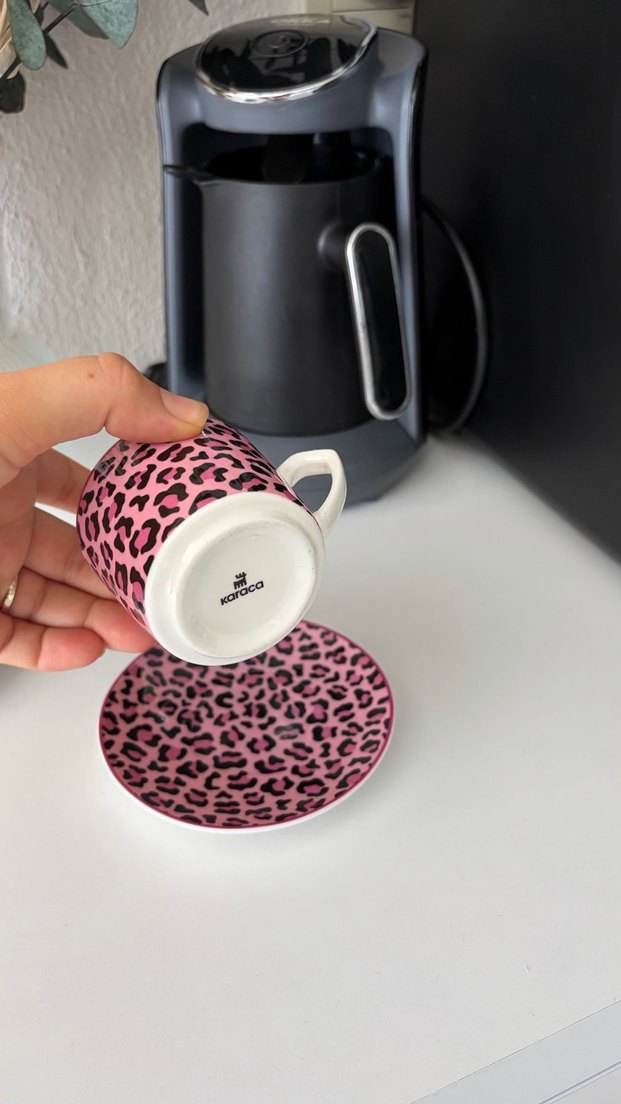 Pembe renkte, koyu leopar desenli kahve fincanı ve tabağı seramik malzemeden üretilmiştir. Karaca markalıdır. ☕ diğer ürünü almak istediğinizde 500 yapabilirim fiyatını