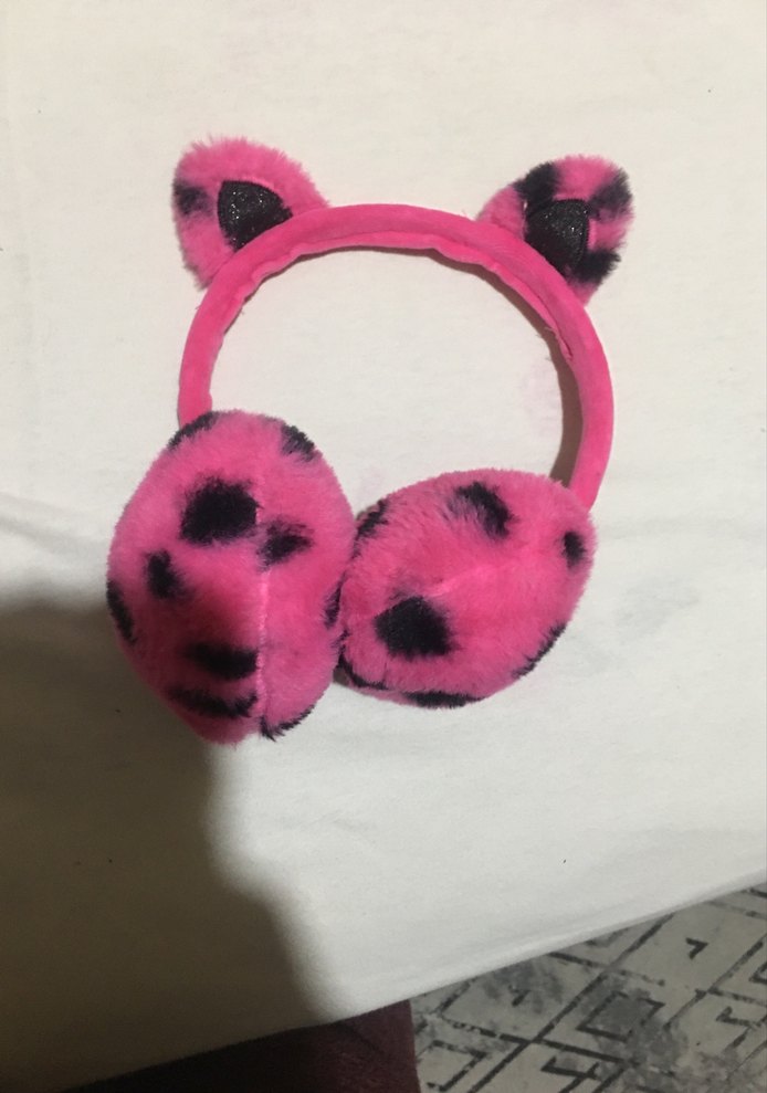 Pembe Leopar Desenli Kürklü Kulaklık