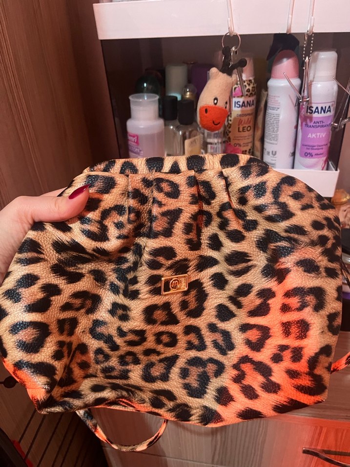 Kadın çantası, leopar desenli ve tokalı tasarıma sahip, sentetik kumaştan üretilmiştir. Cesur, Parisli karşı kültür stilini yansıtır ve günlük kullanıma uygundur.