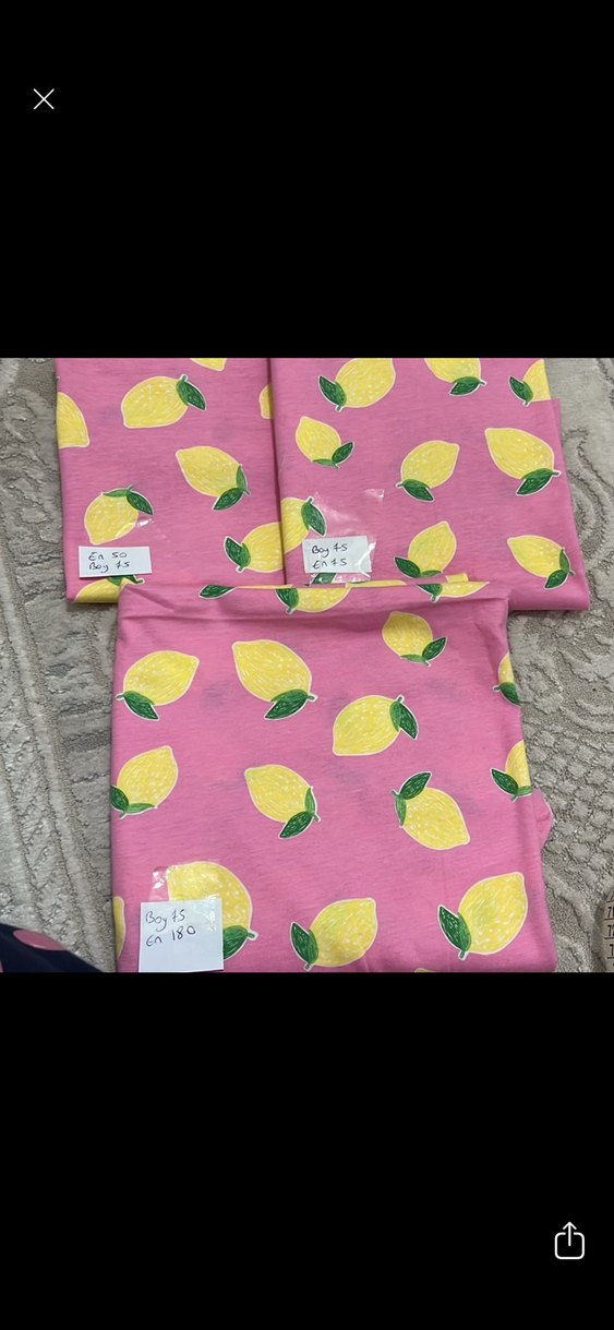 Pembe pastel renkte, limon desenli. 3 parça kumaş