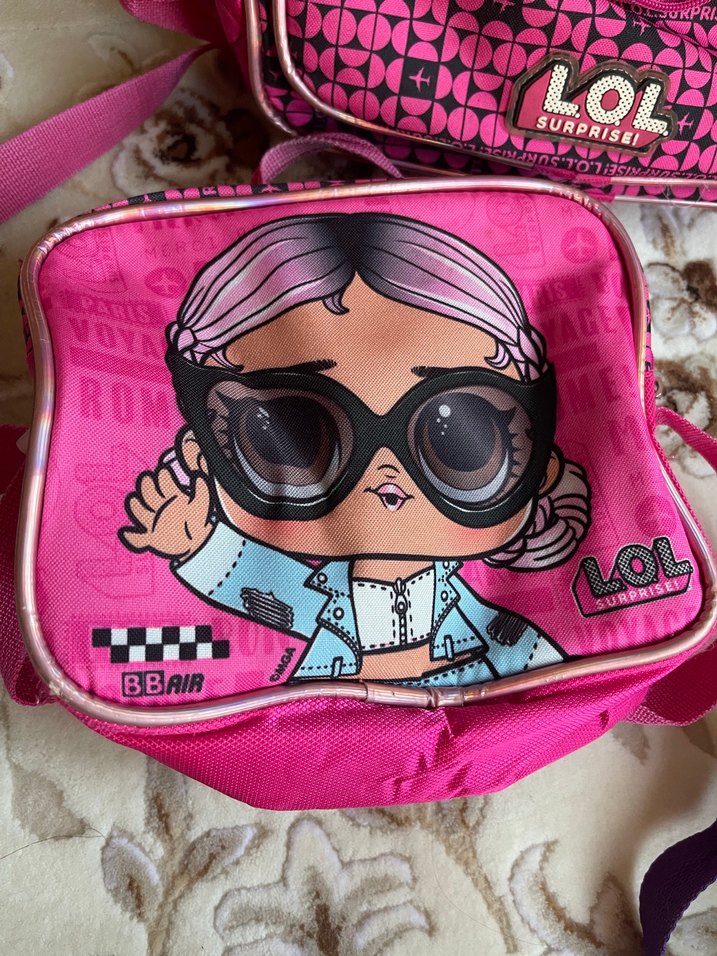 Pastel pembe renkte, ön yüzünde büyük LOL Surprise karakteri ve "BBAIR" yazısı bulunan çocuk okul çantasıdır. Ayarlanabilir omuz askısı mevcuttur.