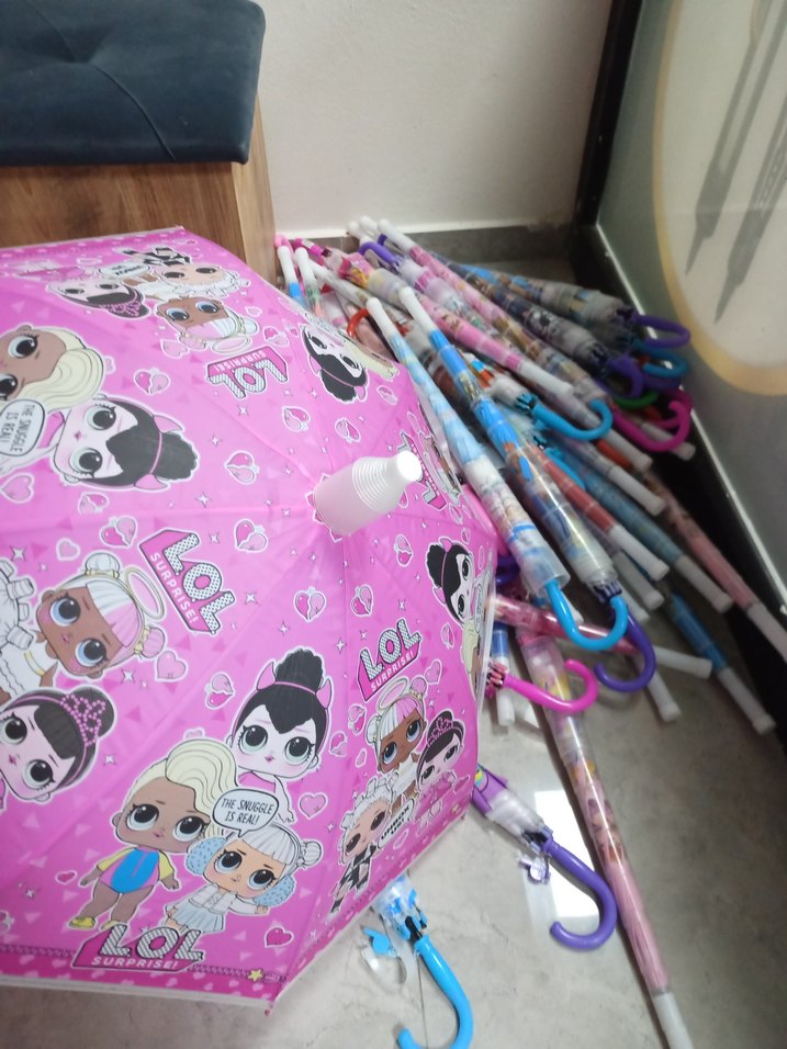 Pembe pastel tonlarda, LOL temalı pop kültür karakterleriyle süslenmiş, elastik detaylı kadın şemsiyesi. Trendy ve rahat bir aksesuar. ☔
