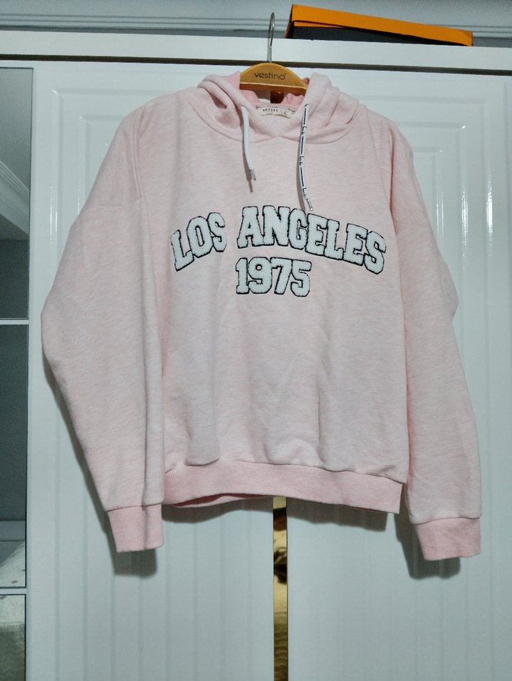 Pembe pastel tonlarda, uzun kollu, yuvarlak yaka, 'Los Angeles 1975' baskılı, dantel detaylı, yumuşak ve sıcak kumaştan kadın sweatshirtü. ️Breeze mağazasından alındı birkaç kez sayılı giyildi ihtiyaç fazlası olduğu için satıyorum yüzde yüz pamuklu