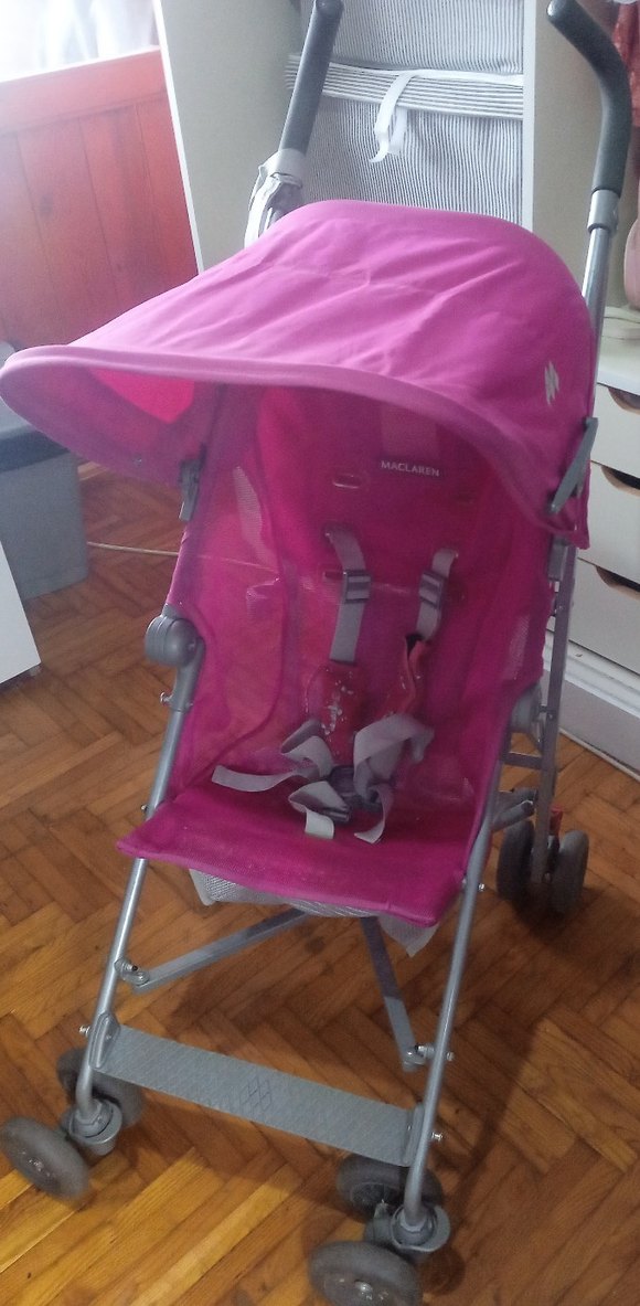 Maclaren pembe bebek arabası gri detaylı çerçeveye ve emniyet kemerine sahiptir yagmurlugusi da var. elden teslim istanbul umraniye