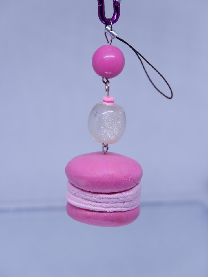 Renkli pembe makaron şeklinde püsküllü kadın anahtarlık