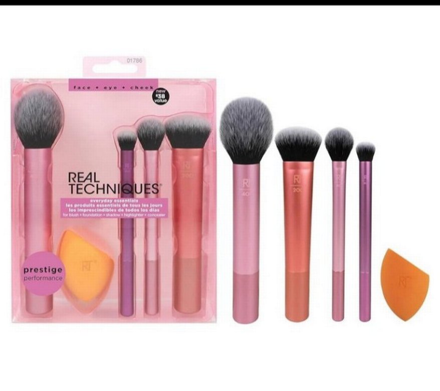 Yüz, göz ve yanak için yumuşak kıllara sahip dört adet açık pembe makyaj fırçası seti. Pürüzsüz uygulama ve hassas karıştırma sağlar.