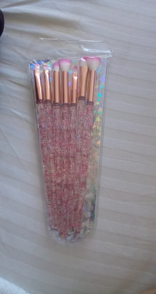 Pembe saplı, ışıltılı ve açık renk kıllı makyaj fırçası seti. Farklı makyaj uygulamaları için uygundur. ✨