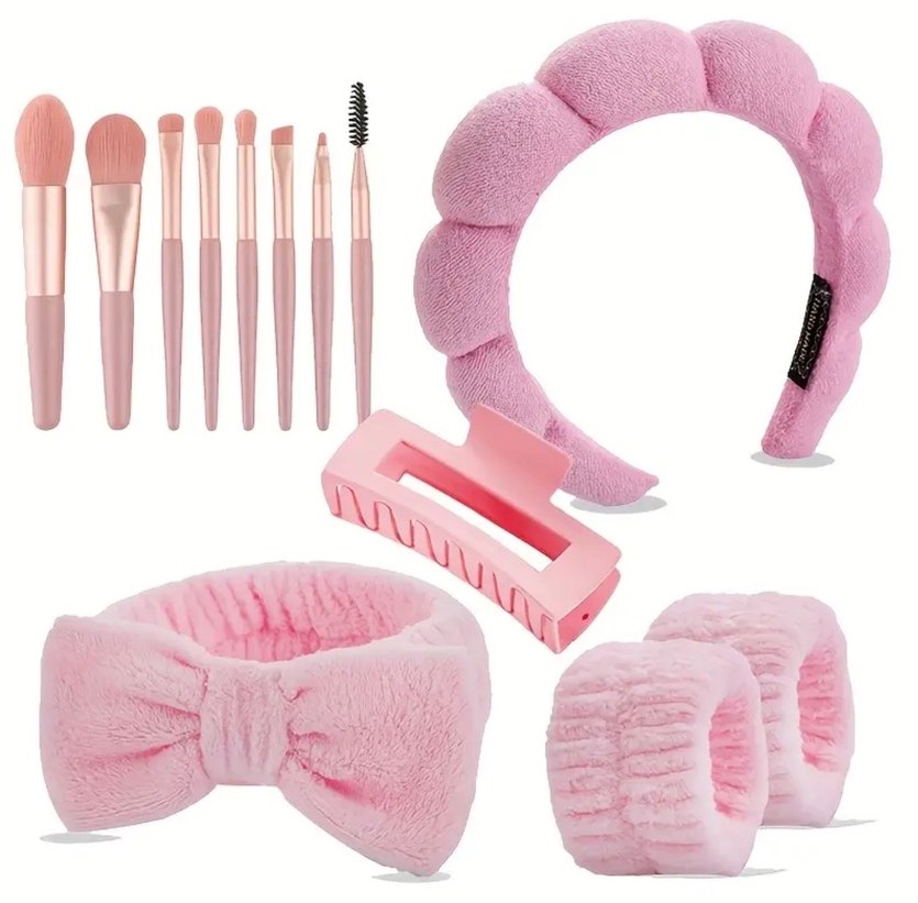 Pembe Makyaj Fırçası Seti ve Saç Aksesuarları