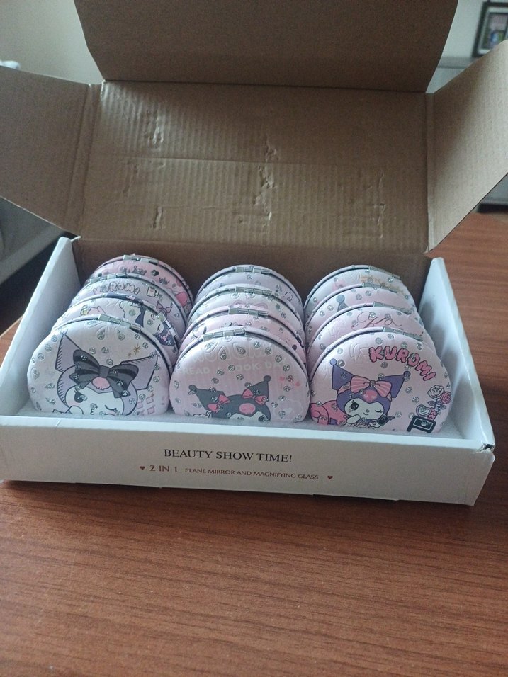 Pastel pembe renkte, plane ayna ve büyüteçli 2'si 1 arada makyaj organizeri. Sevimli çizgi film desenleri ve "BEAUTY SHOW TIME!" yazısı bulunur.