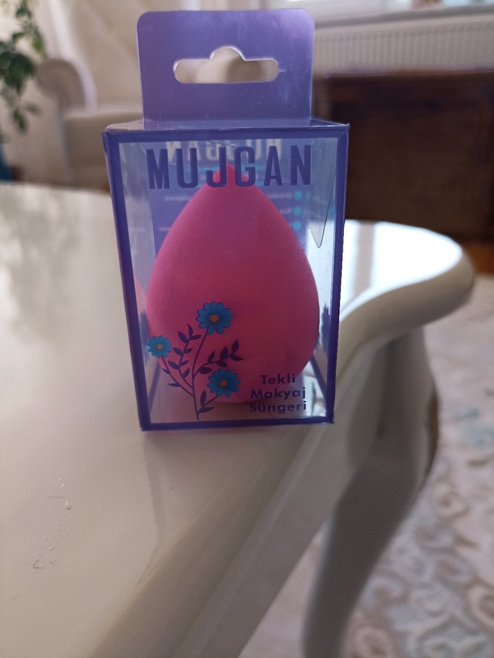 Yumuşak dokulu pembe makyaj süngeri, fondöten ve diğer makyaj ürünlerini pürüzsüzce uygulamak için uygundur.