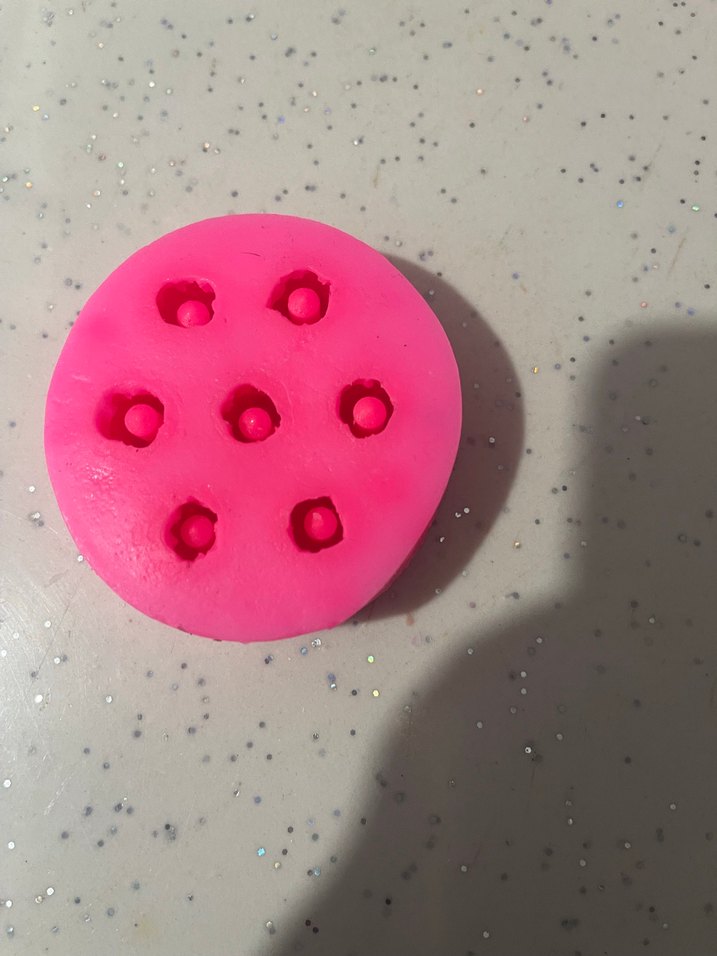 Yuvarlak şekle sahip pembe makyaj süngeri, üzerinde yedi küçük çiçek şeklinde oyuklar bulunur, makyajı pürüzsüzce karıştırmak için uygundur.