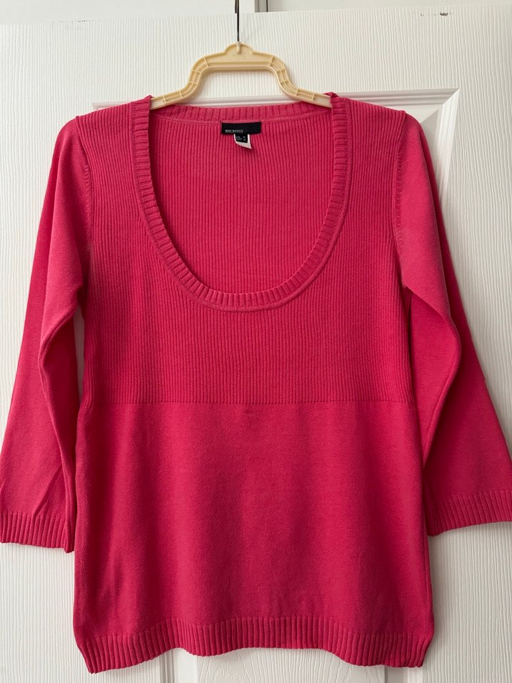 Pembe renkte, yuvarlak yaka ve uzun kollu triko kazak. Rahat kesimli ve midi boyda, günlük kullanıma uygun rahat bir model. İspanya’dan alınmıştır.. 3.-4 kez giyilmiştir. uzunluk 70 santim, bel çevresi:45 cm. İki koltuk arası genişlik:48 cm. Kol uzunluğu: 51cm.