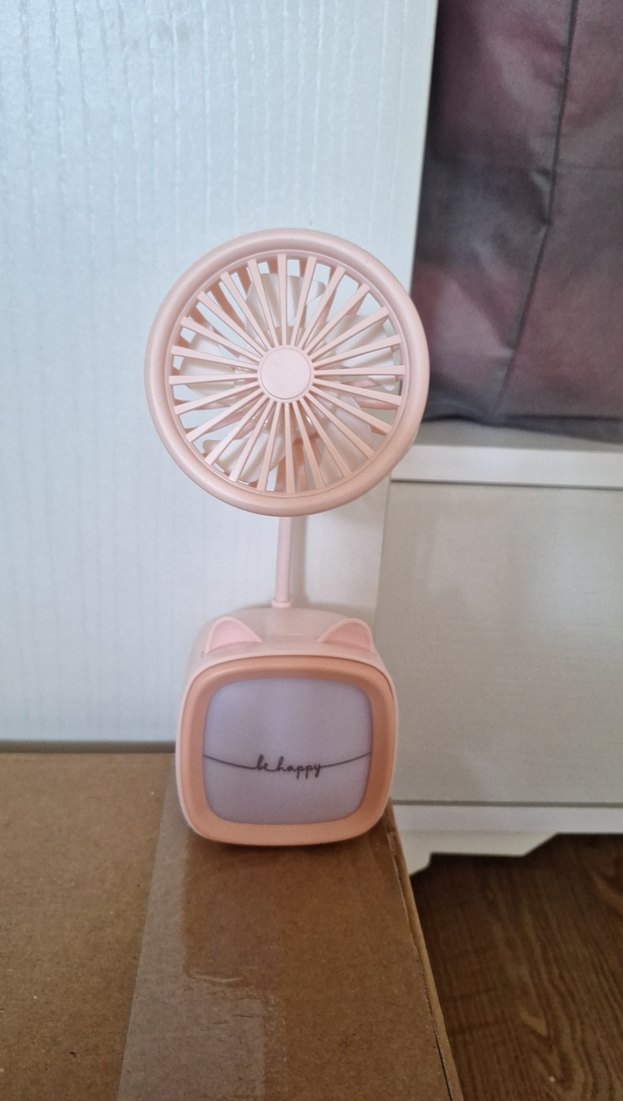 Diger markasına ait pastel pembe masaüstü mini vantilatör, küçük fan başlığı ve dekoratif tabanıyla kişisel kullanım için uygundur. ️Sadece kablolu çalışıyor ışığı yanıyor ve vantilatörü çalışıyor.