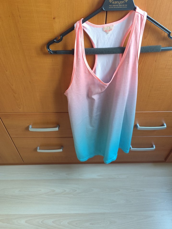 Pamuklu, pastel tonlarda batik desenli, V yakalı, salaş kesim kadın atlet. Spor ve rahat tarz için ideal, şık ve konforlu.