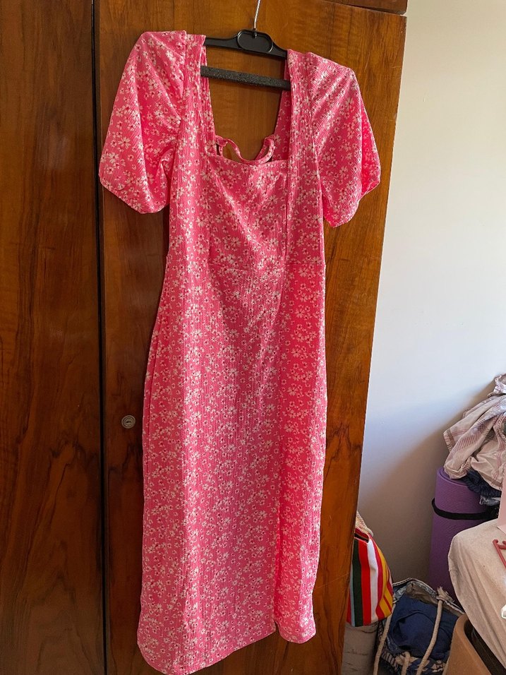 Pembe midi boy Çiçekli Elbise