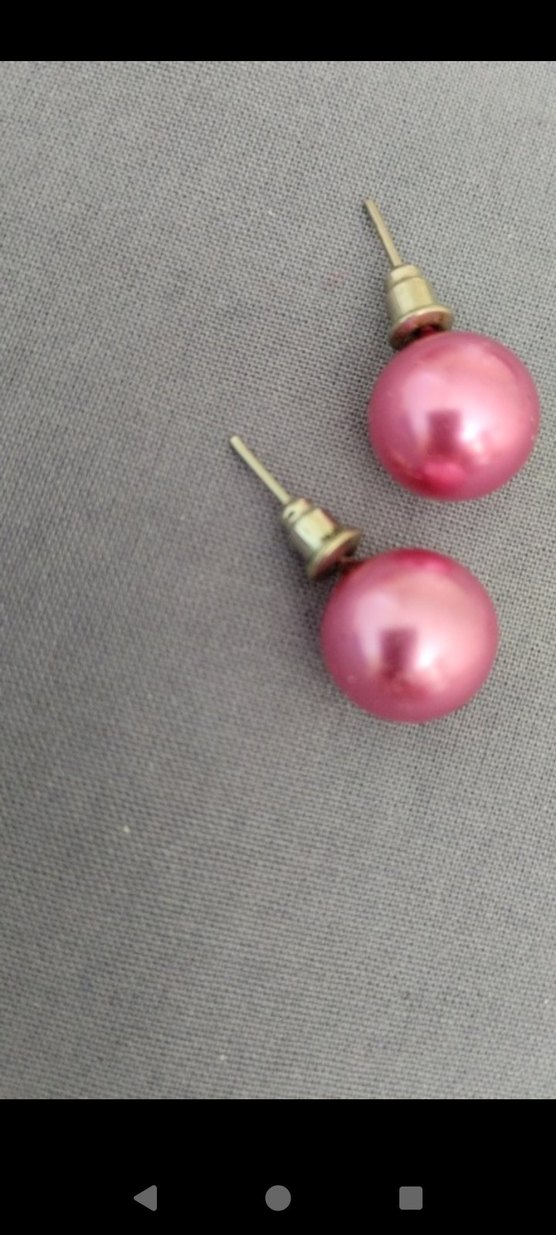 Pembe, düğme şeklinde midi boyunda, parlak yüzeyli küpeler. Romantik akşamlar için bohem tarzda, renkli ve gösterişli bir dokunuş sağlar.