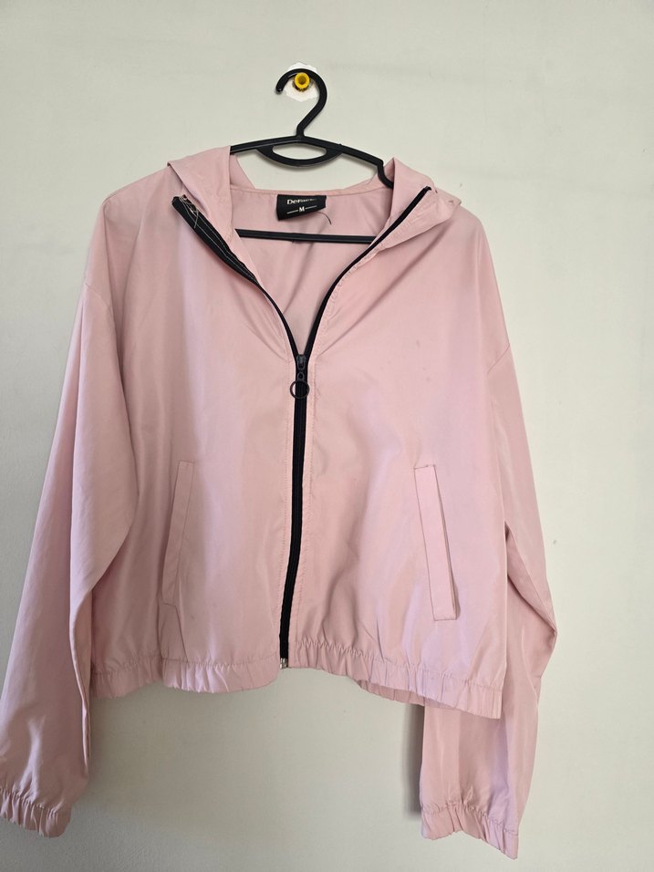 Kadınlar için pembe midi boy fermuarlı ceket, bol kesim, uzun kollu ve yakalıdır. Sentetik kumaştan yapılmış, günlük kullanıma uygundur.