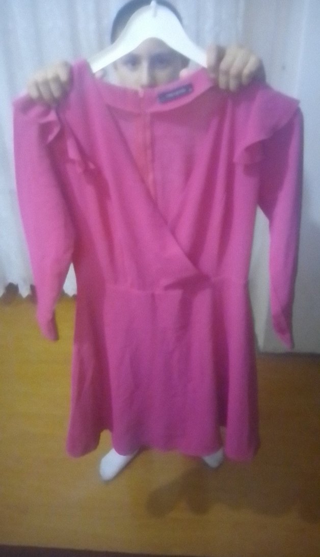 Pembe Midi Boy Kadın Uzun Kollu Salaş Elbise