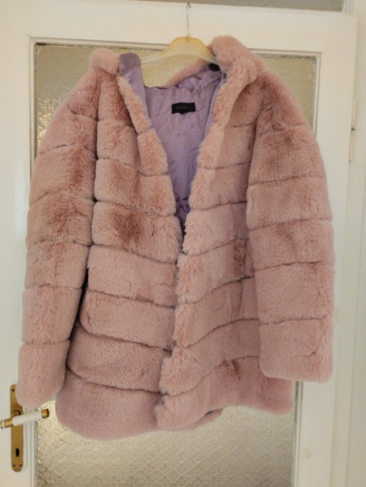 Pembe midi boy, kürk detaylı, yumuşak fleece kumaştan, uzun kollu ve notched yaka ceket. Günlük kullanıma uygun, şık ve rahat. iki kol arası 73 cm boy 68cm