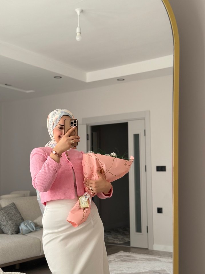 Pembe Midi Boy Uzun Kollu Pamuk Bluz