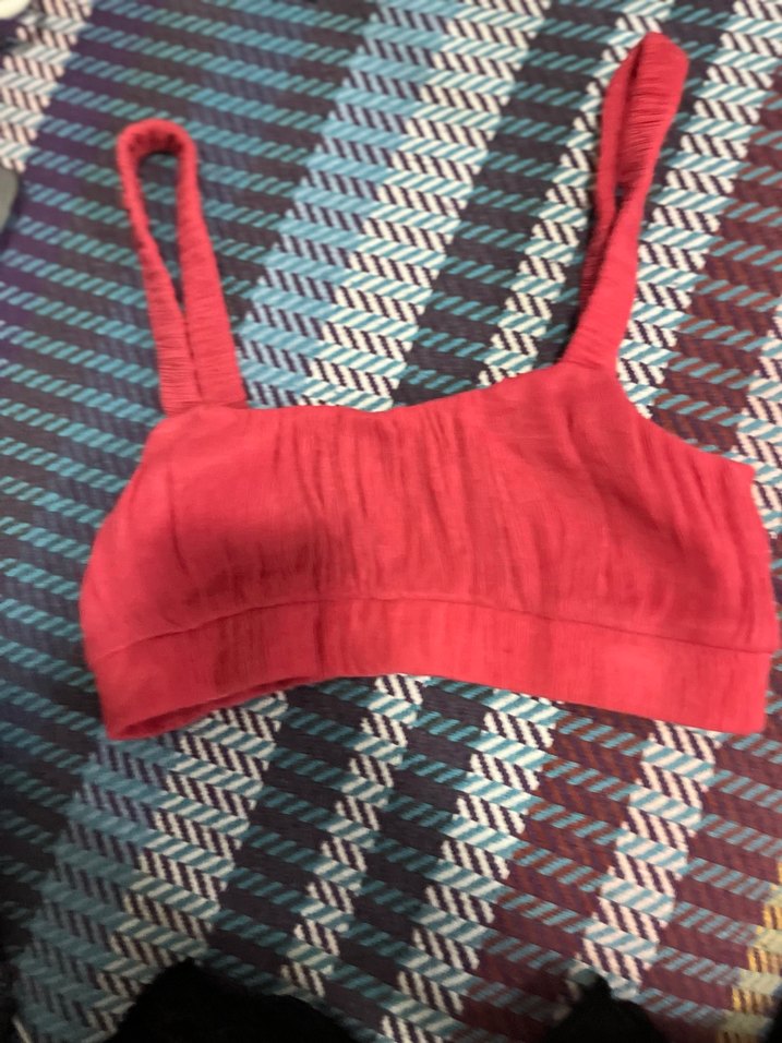 Pembe renkli, ince askılı normal uzunlukta midi crop. Rahat ve yumuşak kumaştan üretilmiştir.