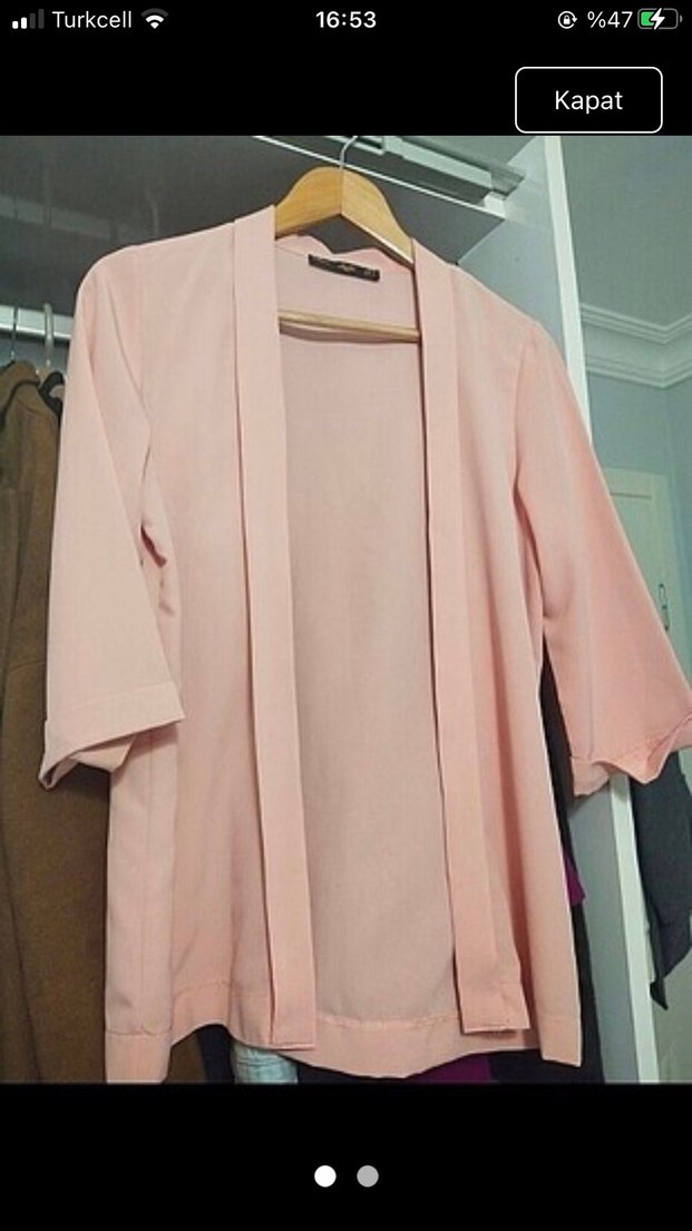 Yumuşak, satenimsi kumaştan yapılmış, bol kesim midi uzunluğunda pembe hamile ceketi. Kısa kollu ve yakası kesik detaylıdır, ofis için uygun minimal ve şık bir tasarıma sahiptir.