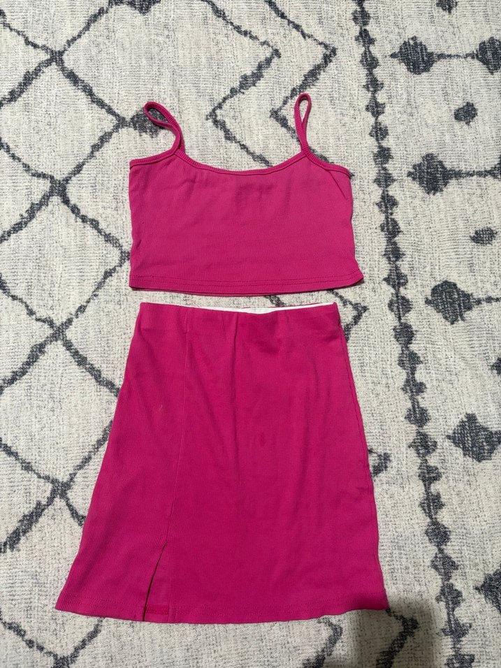 Pembe askılı, midi boy, vücuda oturan iki parçalı elbise, yumuşak sentetik kumaştan, gündelik şık tarz için uygun. 36 beden eteğinde nokta ucu kadar leke var marka temsili