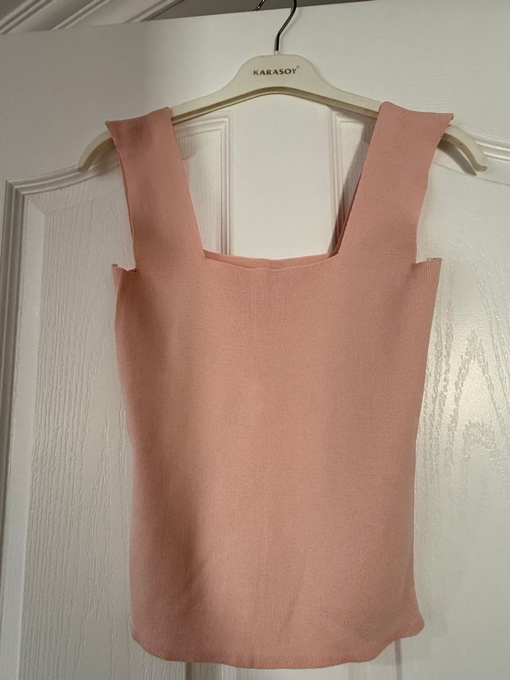Pembe, straplez yaka, vücuda oturan midi uzunlukta kadın atlet. Yumuşak sentetik kumaştan üretilmiş, gündelik kullanıma uygun sade ve şık tasarım. Hiç kullanılmadı