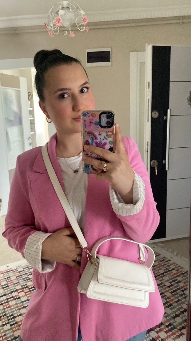 Pembe Midi Kadın Blazer Ceket