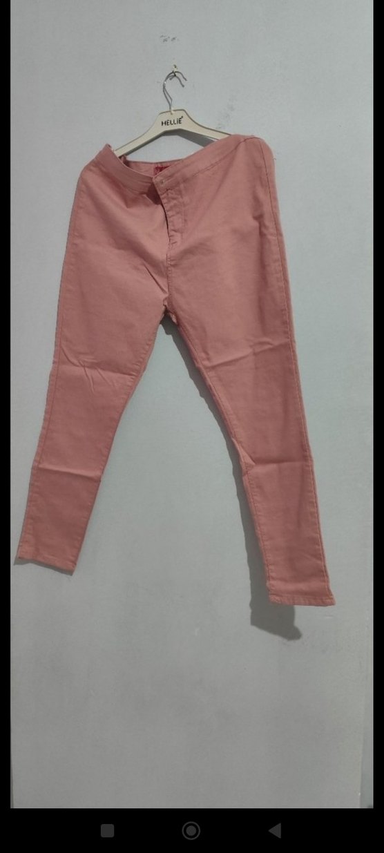 Pastel pembe, düz kesim midi kumaş pantolon, yumuşak sentetik kumaştan üretilmiş, günlük rahat sokak stili için uygun.
