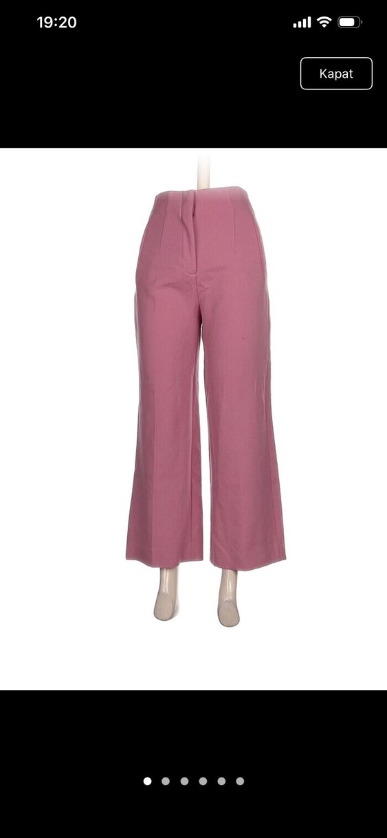 Tok kumaşa sahip. Cep görünüm. Geniş paça kumaş pantolon. Yüksek bel. Pembe pastel renkte, midi boy ve düz kesim kadın pantolon. Düz, desen içermeyen minimalist tasarım, ofis ortamı için uygun, rahat ve şık görünümlü. Malzeme: polyester, elastan, viskoz Bel: 32 cm Uzunluk: 92 cm