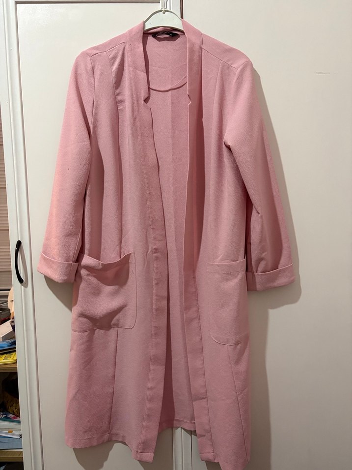 Trençkot pardesü görünümlü ince kumaştır. Lcw marka. Defo olan bölgelerin fotolarını yükledim. Toz pembe rengindedir. Omuzdan boy 100 cmdir