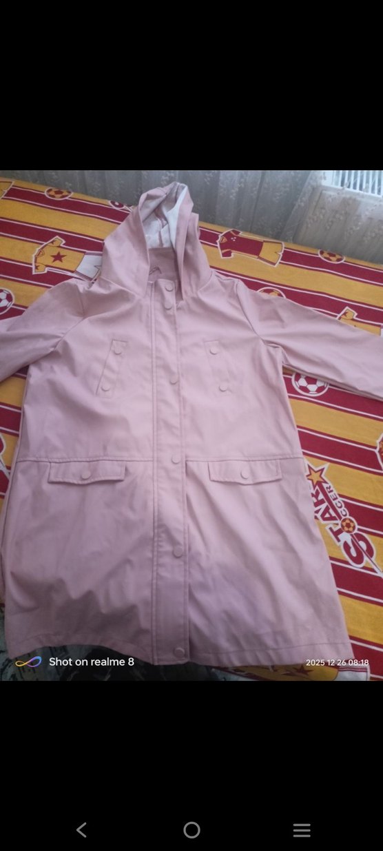 Pembe midi uzunluğunda, düğmeli ve uzun kollu, notched lapel yaka detaylı, sentetik kumaştan üretilmiş, bol kesim kadın yağmurluğu. ️