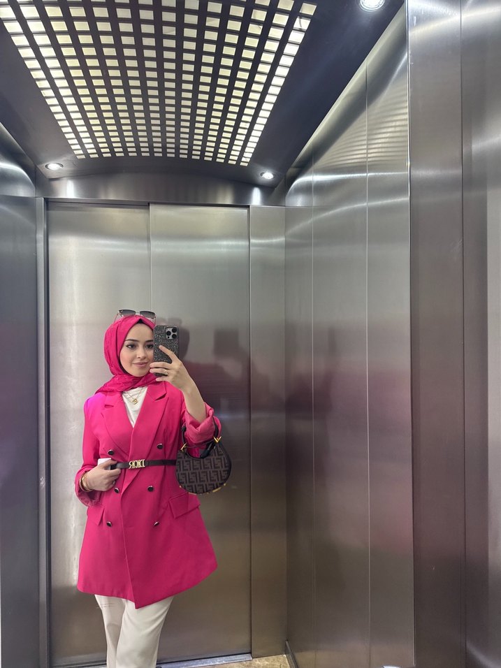 Pembe, midi boy kadın kaban, kemerli ve uzun kolludur. Notlu yaka ve regular kesimlidir. Sentetik kumaştan, hafif batik desenlidir.