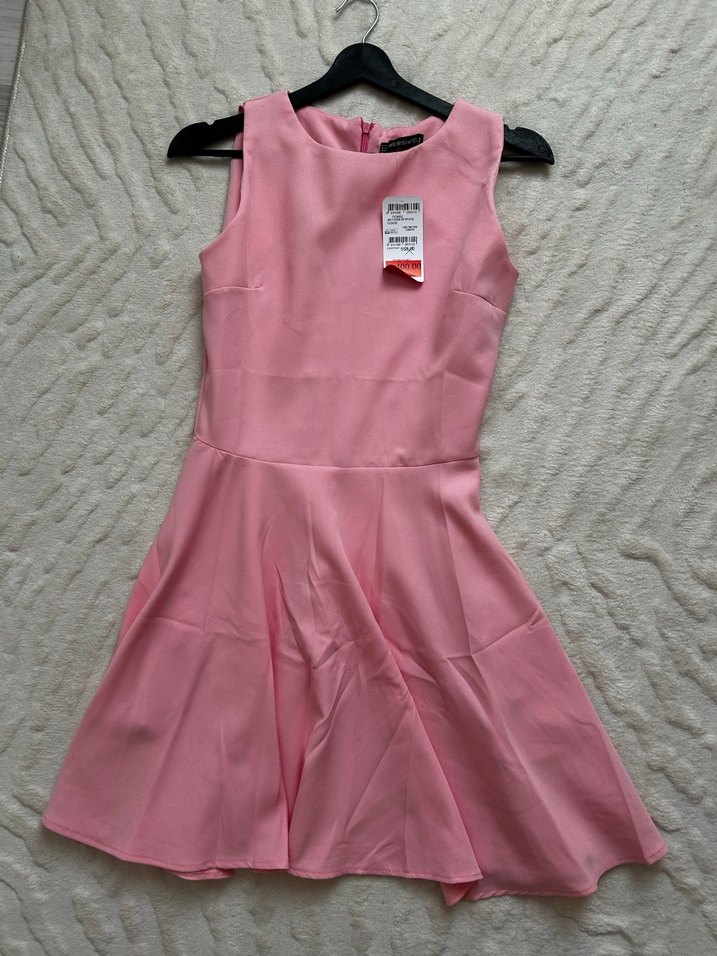 Pembe midi elbise, kolsuz ve yuvarlak yakalıdır. Pastel tonları ve sade tarzıyla günlük kullanıma uygun, rahat ve şık bir görünüme sahiptir. Bride elbisesi olarak almıştım giyilmedi