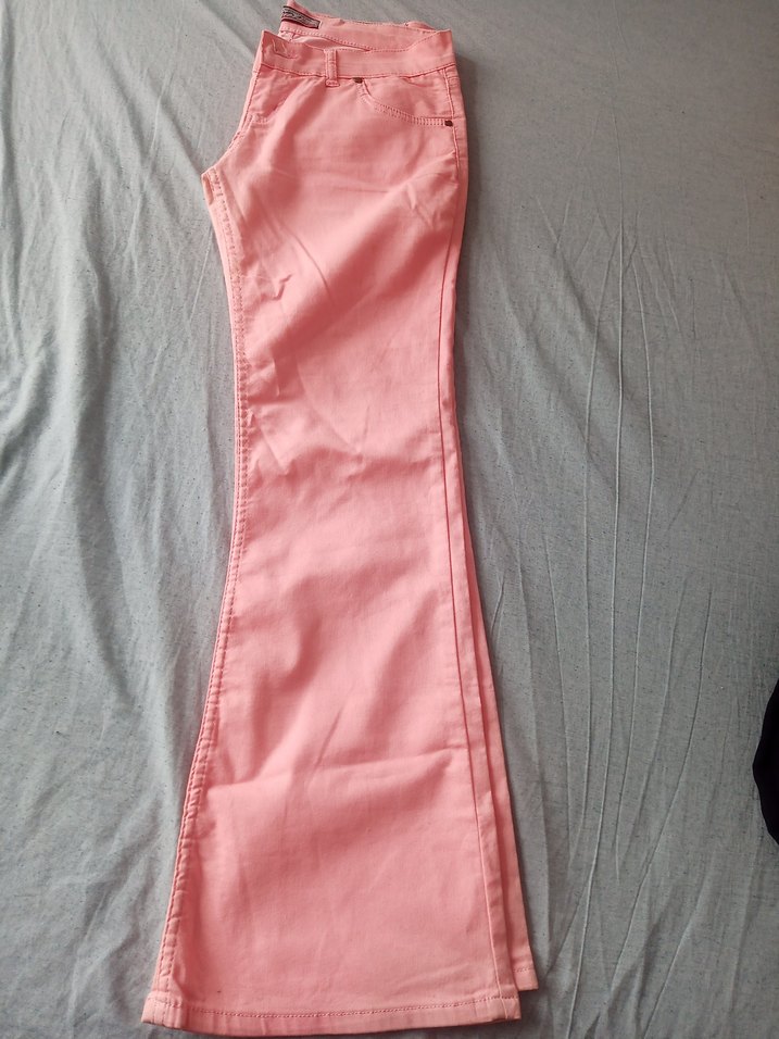 Pembe pastel tonlu, normal boy midi kumaş kadın pantolon, rahat ve şık bir görünüm sunar.