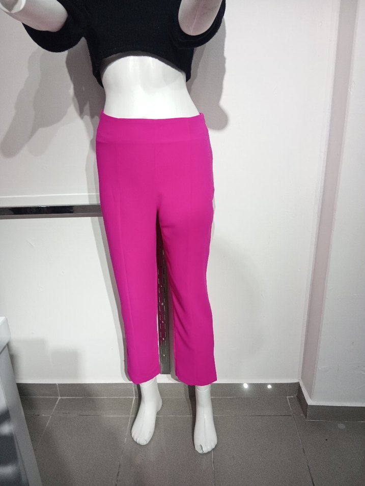 Pembe midi kadın pantolon, rahat kesimi ve düz yapısıyla günlük kullanıma uygun. Modern ve zahmetsiz şıklık sunar.