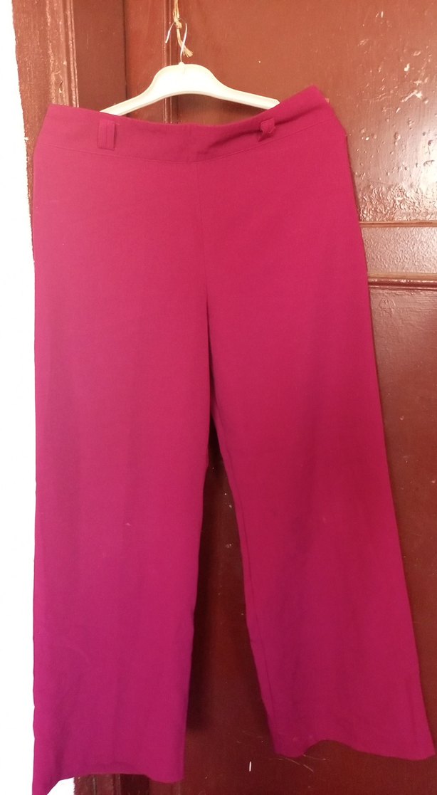 Pembe midi uzunlukta, normal kesim ve parlak, ipeksi dokulu kadın pantolonları, ofis için şık ve modaya uygun bir görünüm sağlar. gardirobumda ona uygun üst te vardır.