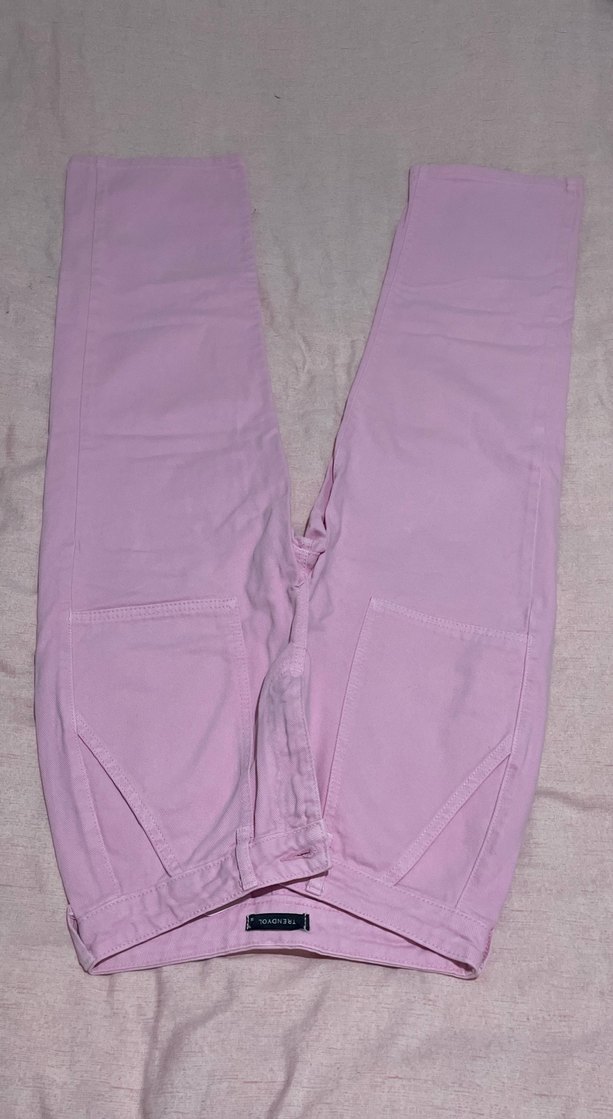 Pembe renkli, pamuk kumaştan rahat kesim midi uzunlukta kadın pantolon. Desensiz tasarımı günlük ve rahat stiller için uygundur.