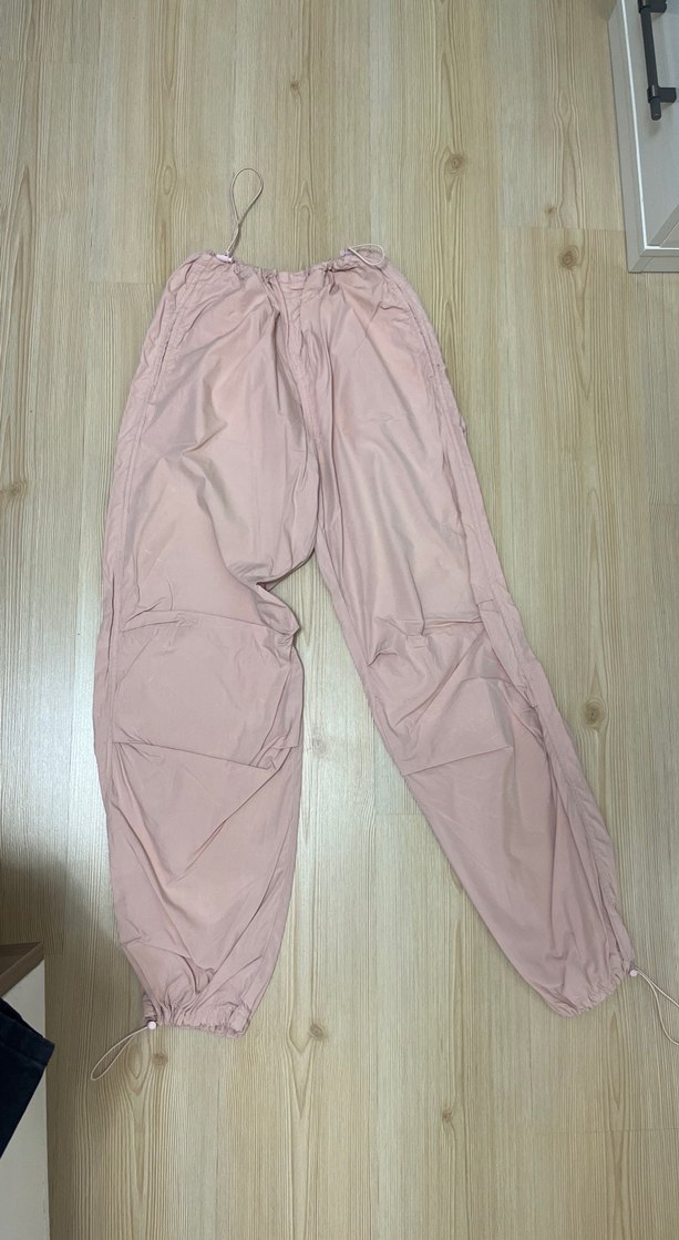 Pembe, midi boy oaraşüt pantolon, rahat kesim, bel ve bilekte bağcık detaylı. Sokak modasına uygun, zahmetsiz şıklık sunar.