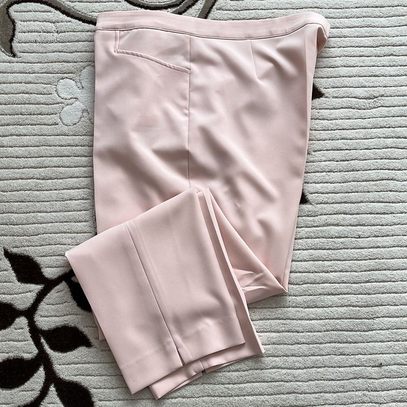 Pembe midi uzunlukta, regular fit, ipeksi kumaştan, pilili detaylı kadın kumaş pantolon, minimalist ofis stili için uygundur.