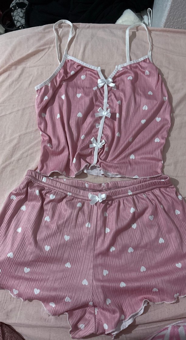 Pembe mini askılı pijama takımı, bol kesim ve küçük kalp desenleriyle rahat ve konforlu bir uyku seti. Pastel tonlarda, rahat kullanım için ideal. Hediye geldi bir kere giydim