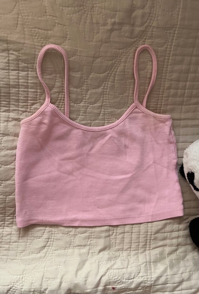 Bu pembe mini crop top, ince askılar ve yumuşak pamuk kumaş ile sade bir tasarıma sahiptir. temiz ürün