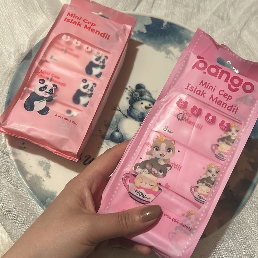 Sevimli hayvan desenli, pembe mini cep ıslak mendil paketi, 8 küçük mendil içerir. Taşımaya uygundur.