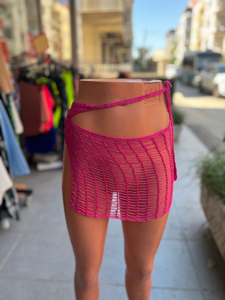 Pembe renkli, dantel detaylı ve askılı mini pareo, cesur ve renkli yılan desenli bohem tarzıyla açık hava kullanımı için uygundur. Standart bedendir el örmesidir satışa hazırdır istenilen renkte sipariş alınır