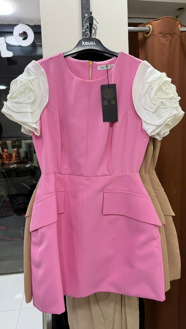 Pembe mini elbise, beyaz fırfırlı kollar ve regular fit ile yumuşak sentetik kumaştan üretilmiştir. Modern klasik tarzda, günlük kullanım için uygundur. Kolsuz ve straplez yakalıdır, Parisli avant-garde havası taşır. Üzerinde "kausi." etiketi bulunur. ✨