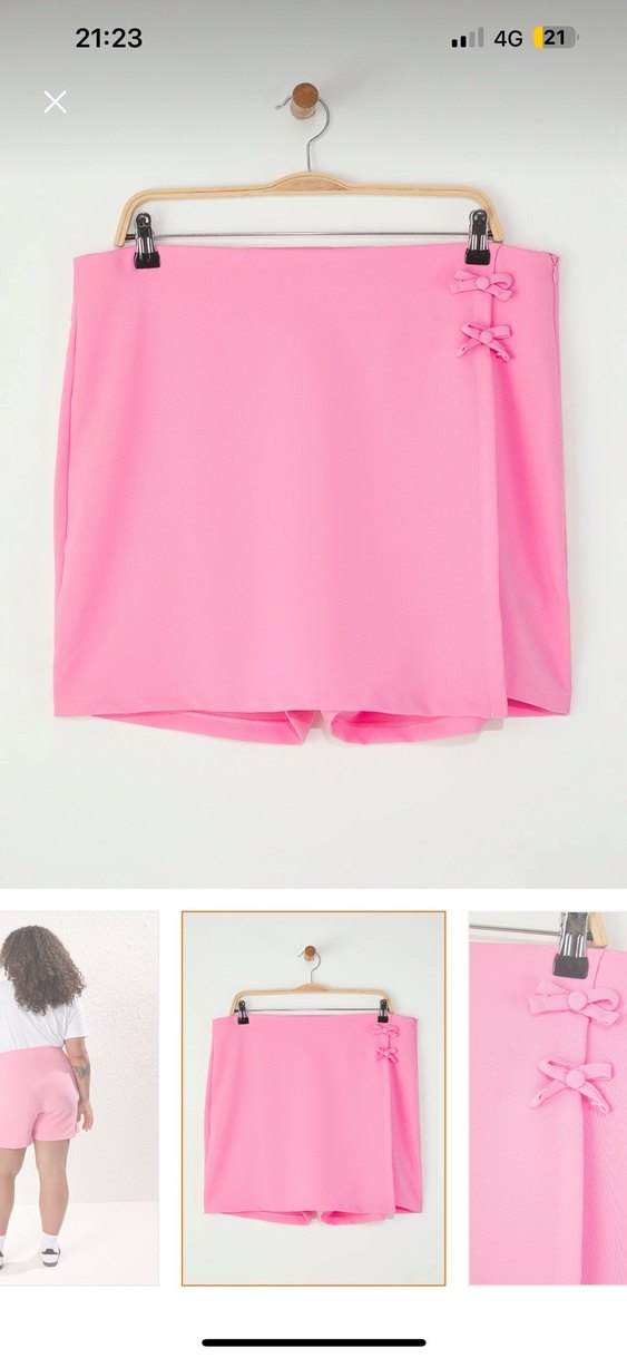 Pastel pembe mini etek, rahat kesim ve saten dokuda. İki küçük fiyonk detayıyla sade ve şık bir görünüm sunar. Günlük kullanım için uygundur.
